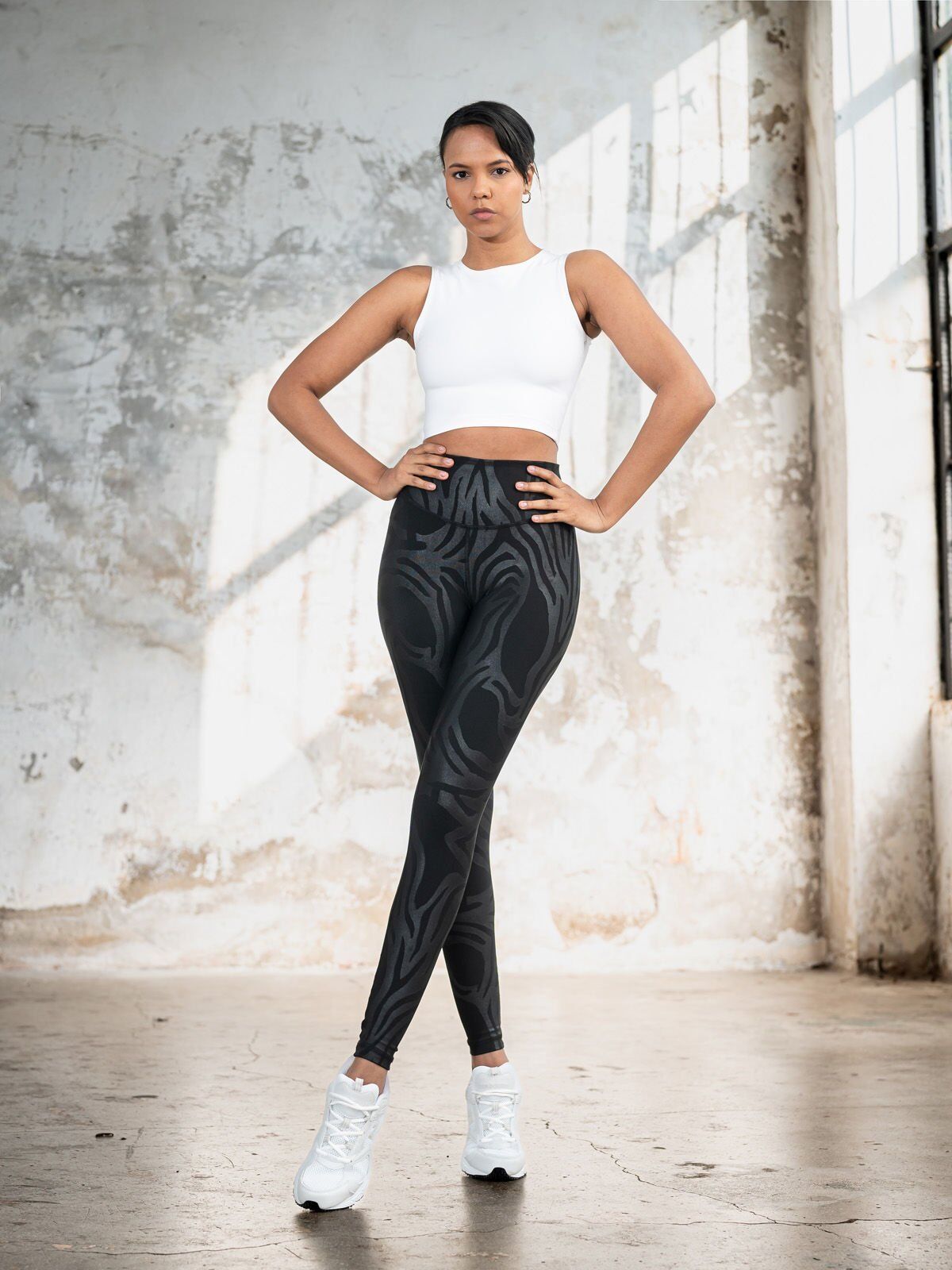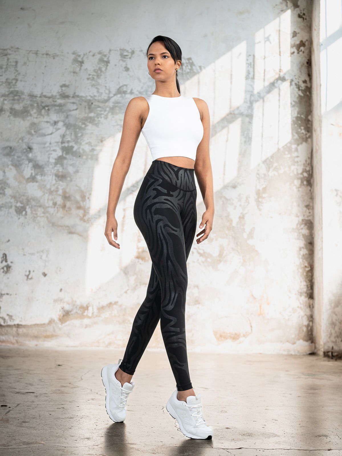 Black Viper helanke sa upečatljivom zebra šarom odlikuju se moćnim izgledom i besprekornim krojem. Čvrst i gust materijal ne providi se i efikasno prikriva celulit i nesavršenosti, stvarajući vizuelno vitkiju siluetu. Visoki struk oblikuje stomak i drži helanke na mestu i tokom najintenzivnijih aktivnosti, a njihov odvažan dizajn čini ih jednako upečatljivim i u teretani i u noćnom izlasku.